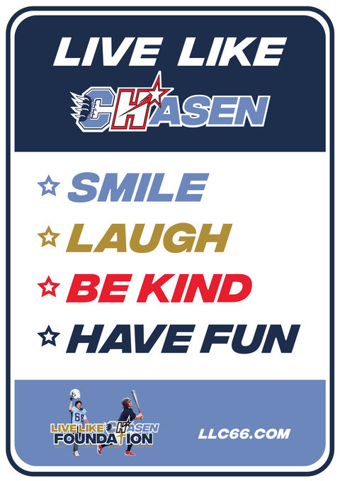 Help improve the sports experience for your team by championing the values that really matter. Contact us today to receive a Live Like Chasen field sign.